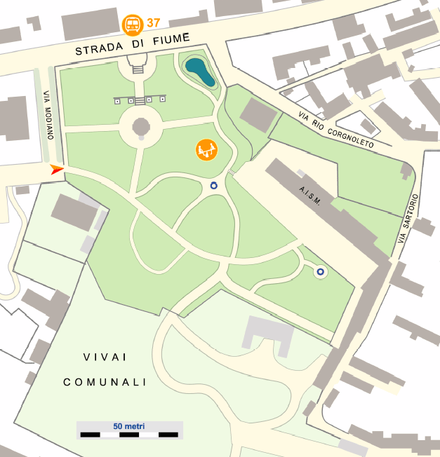 Recentemente ristrutturata una parte del parco è stata riaperta al pubblico e dotata di zone di sosta e di un’area giochi.