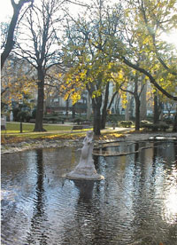 Nella parte alta si trovano l’edificio giù destinato a caffetteria e il gazebo per i concerti, mentre nella parte bassa più recente, sono collocate le sculture erette in onore dei cittadini illustri nel campo della cultura.